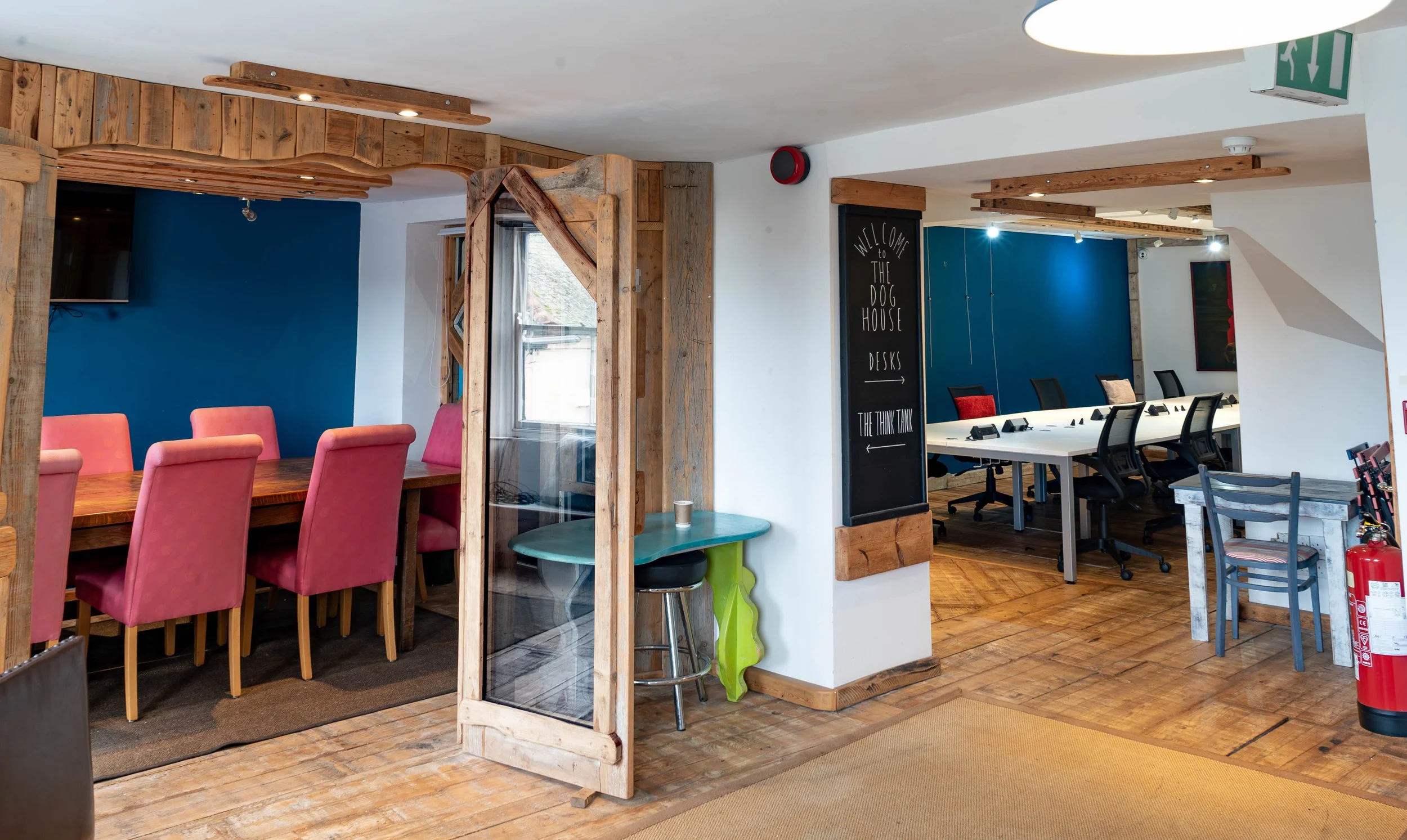 Located on the first floor of 21 Pydar Street above our Restaurant, it is within walking distance of local amenities and transport links such as Truro Bus Station (10 minute walk) and Truro Train Station (12 minute walk). It is a wonderfully outfitted area with 10 desk spaces, a conference room and lounge area, with stunning views of Truro Cathedral.